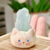 Cute Handmade Crystal Cat Figurine – Custom Clay Cat with Healing Crystals for Positive Energy & Decor